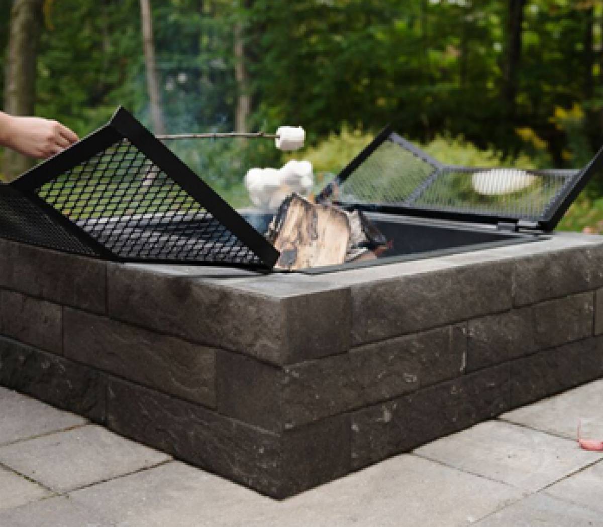 Le foyer en béton Moderno est composé de 24 murets ainsi que d’une cuve en acier noir peint ou en acier inoxydable pour protéger les pierres d’un contact direct avec les flammes. Nos foyers extérieurs sont abordables, pratiques et résistants.